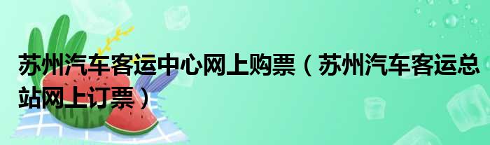 苏州汽车客运中心网上购票(苏州汽车客运总站网上订票)