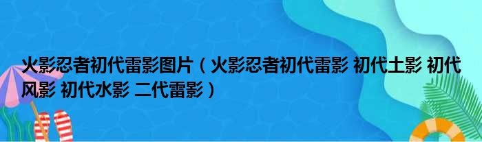 大家好,今天小六子来为大家解答以下的问题,关于火影忍者初代雷影图片,火影忍者初代雷影 初代土影 初代风影 初代水影 二代雷影这个很多人还不知道,现在让我们一起来看看吧!