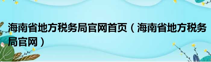 导读 大家好,今天小六子来为大家解答以下的问题,关于海南省地方税务局官网首页,海南省地方税务局官网这个很多人还不知道,现在让我们一起来看