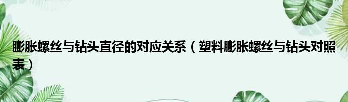 膨胀螺丝与钻头直径的对应关系(塑料膨胀螺丝与钻头对照表)