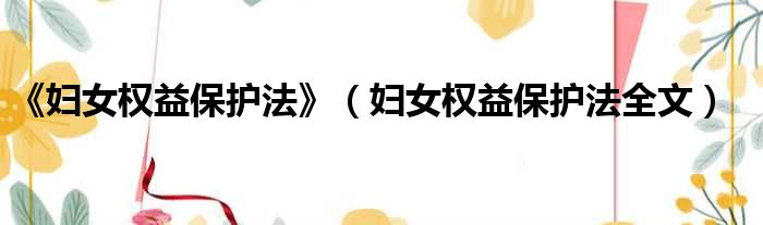 《妇女权益保护法》(妇女权益保护法全文)