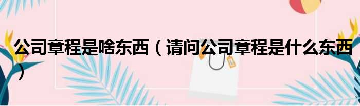 导读 大家好,今天小六子来为大家解答以下的问题,关于公司章程是啥东西,请问公司章程是什么东西这个很多人还不知道,现在让我们一起来看看吧!1