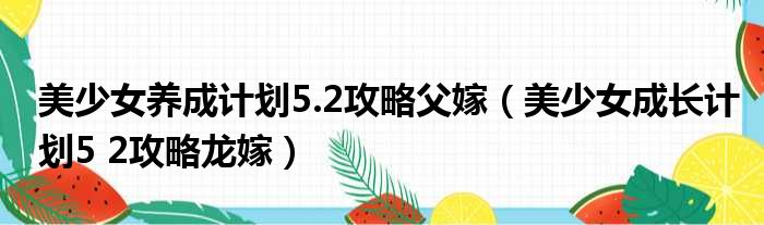 美少女养成计划5.2攻略父嫁(美少女成长计划5 2攻略龙嫁)
