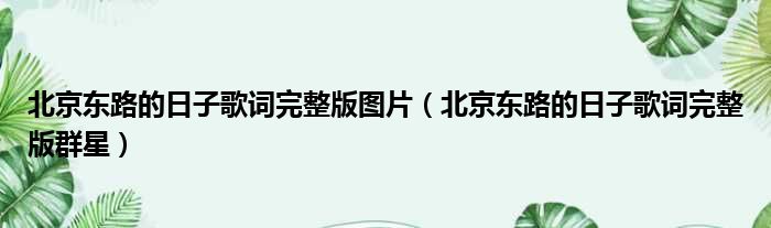 北京东路的日子歌词完整版图片(北京东路的日子歌词完整版群星)