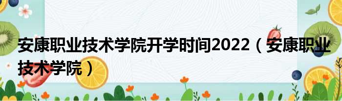 安康职业技术学院开学时间2022(安康职业技术学院)