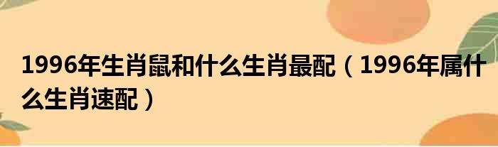 1996年生肖鼠和什么生肖最配(1996年属什么生肖速配)