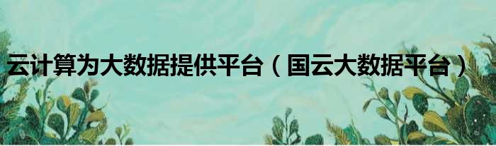 导读 大家好,今天小六子来为大家解答以下的问题,关于云计算为大数据提供平台,国云大数据平台这个很多人还不知道,现在让我们一起来看看吧!1、