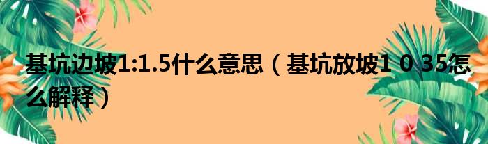 基坑边坡1:1.5什么意思(基坑放坡1 0 35怎么解释)