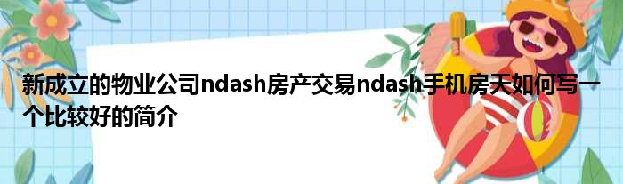 新成立的物业公司ndash房产交易ndash手机房天如何写一个比较好的简介