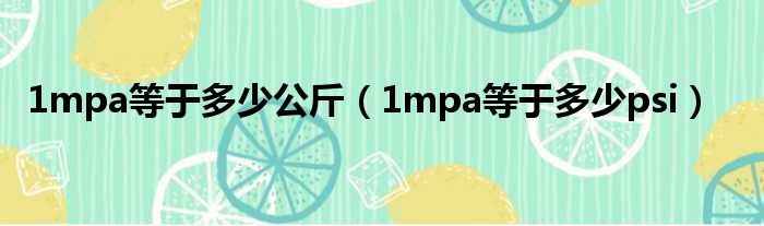 导读 大家好,今天小六子来为大家解答以下的问题,关于1mpa等于多少公斤,1mpa等于多少psi这个很多人还不知道,现在让我们一起来看看吧!1、【psi