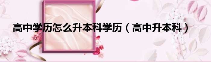 大家好,今天小六子来为大家解答以下的问题,关于高中学历怎么升本科学历,高中升本科这个很多人还不知道,现在让我们一起来看看吧!