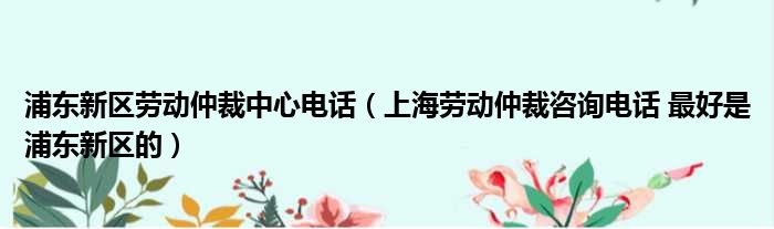 浦东新区劳动仲裁中心电话(上海劳动仲裁咨询电话 最好是浦东新区的)