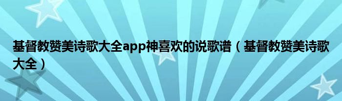 导读 大家好,今天小六子来为大家解答以下的问题,关于基督教赞美诗歌大全app神喜欢的说歌谱,基督教赞美诗歌大全这个很多人还不知道,现在让我们