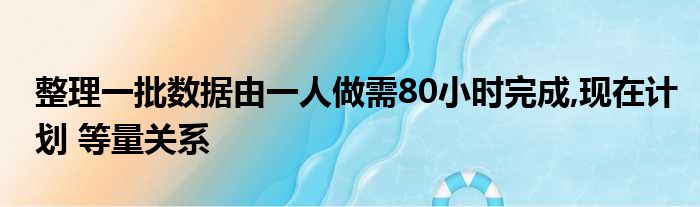 导读 大家好,今天小六子来为大家解答以下的问题,关于整理一批数据由一人做需80小时完成,现在计划 等量关系这个很多人还不知道,现在让我们一起