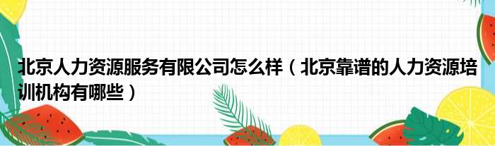 北京人力资源服务有限公司怎么样(北京靠谱的人力资源培训机构有哪些)