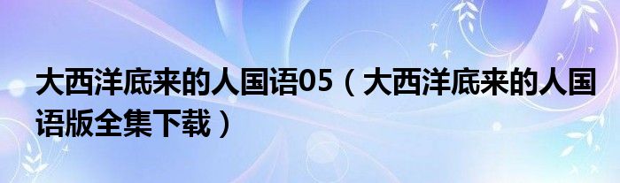 导读 大家好,今天小六子来为大家解答以下的问题,关于大西洋底来的人国语05,大西洋底来的人国语版全集下载这个很多人还不知道,现在让我们一起