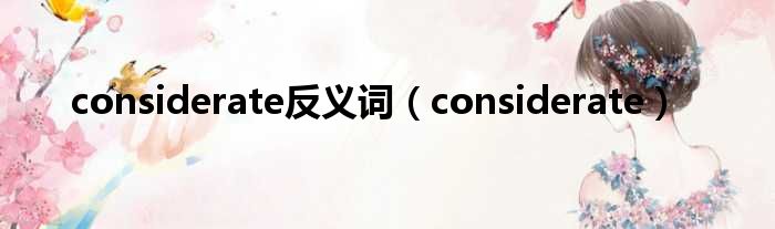 大家好,今天小六子来为大家解答以下的问题,关于considerate反义词,considerate这个很多人还不知道,现在让我们一起来看看吧!