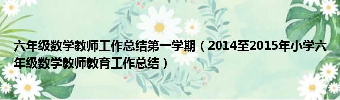 六年级数学教师工作总结第一学期(2014至2015年小学六年级数学教师教育工作总结)