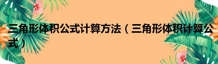 导读 大家好,今天小六子来为大家解答以下的问题,关于三角形体积公式计算方法,三角形体积计算公式这个很多人还不知道,现在让我们一起来看看吧