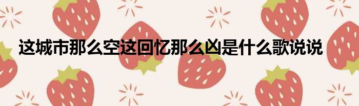 导读 大家好,今天小六子来为大家解答以下的问题,关于这城市那么空这回忆那么凶是什么歌说说这个很多人还不知道,现在让我们一起来看看吧!1、歌
