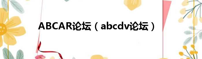 大家好,今天小六子来为大家解答以下的问题,关于ABCAR论坛,abcdv论坛这个很多人还不知道,现在让我们一起来看看吧!
