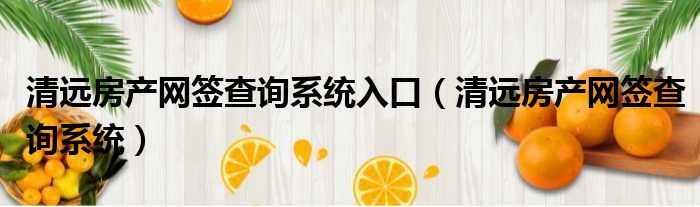 清远房产网签查询系统入口(清远房产网签查询系统)