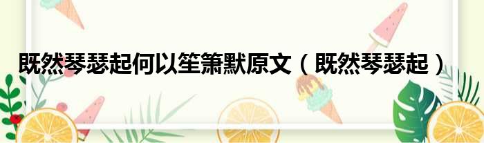 大家好,今天小六子来为大家解答以下的问题,关于既然琴瑟起何以笙箫默原文,既然琴瑟起这个很多人还不知道,现在让我们一起来看看吧!