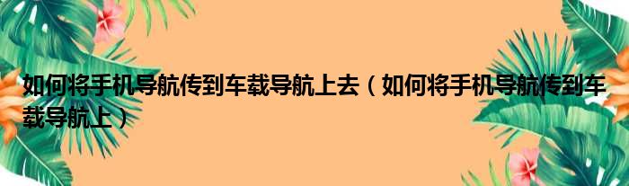 如何将手机导航传到车载导航上去(如何将手机导航传到车载导航上)
