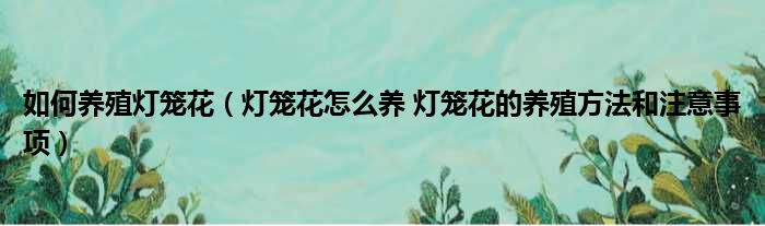 导读 大家好,今天小六子来为大家解答以下的问题,关于如何养殖灯笼花,灯笼花怎么养 灯笼花的养殖方法和注意事项这个很多人还不知道,现在让我