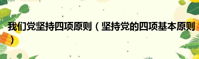 导读 大家好,今天小六子来为大家解答以下的问题,关于我们党坚持四项原则,坚持党的四项基本原则这个很多人还不知道,现在让我们一起来看看吧!1