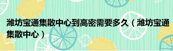 潍坊宝通集散中心到高密需要多久(潍坊宝通集散中心)