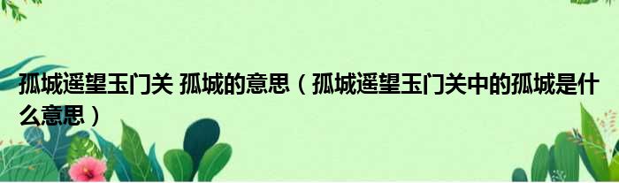 孤城遥望玉门关 孤城的意思(孤城遥望玉门关中的孤城是什么意思)