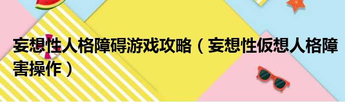 妄想性人格障碍游戏攻略(妄想性仮想人格障害操作)