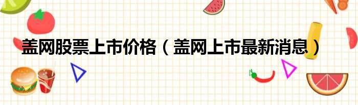 大家好,今天小六子来为大家解答以下的问题,关于盖网股票上市价格,盖网上市最新消息这个很多人还不知道,现在让我们一起来看看吧!