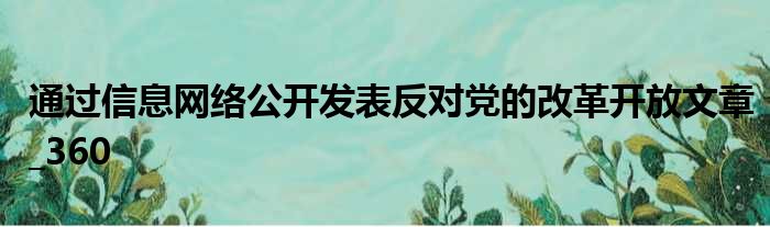 导读 大家好,今天小六子来为大家解答以下的问题,关于通过信息网络公开发表反对党的改革开放文章_360这个很多人还不知道,现在让我们一起来看看