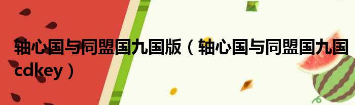 轴心国与同盟国九国版(轴心国与同盟国九国cdkey)