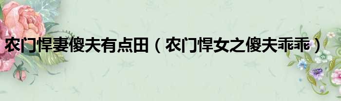 导读 大家好,今天小六子来为大家解答以下的问题,关于农门悍妻傻夫有点田,农门悍女之傻夫乖乖这个很多人还不知道,现在让我们一起来看看吧!1、