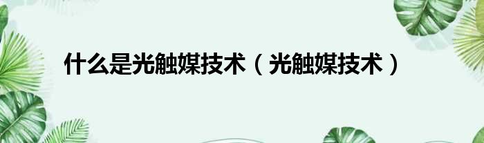 导读 大家好,今天小六子来为大家解答以下的问题,关于什么是光触媒技术,光触媒技术这个很多人还不知道,现在让我们一起来看看吧!1、光触媒是一