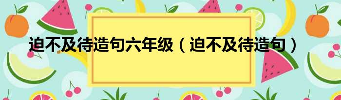 大家好,今天小六子来为大家解答以下的问题,关于迫不及待造句六年级,迫不及待造句这个很多人还不知道,现在让我们一起来看看吧!