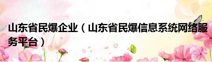 山东省民爆企业(山东省民爆信息系统网络服务平台)