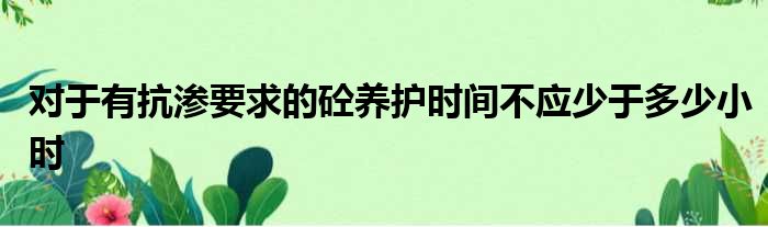 导读 大家好,今天小六子来为大家解答以下的问题,关于对于有抗渗要求的砼养护时间不应少于多少小时这个很多人还不知道,现在让我们一起来看看吧