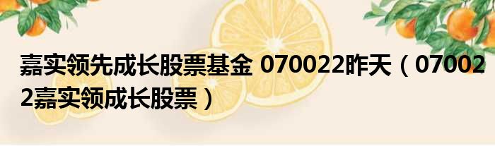 嘉实领先成长股票基金 070022昨天(070022嘉实领成长股票)