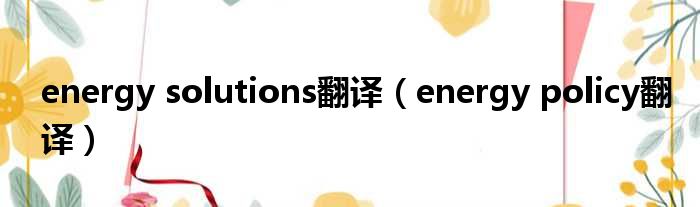 导读 大家好,今天小六子来为大家解答以下的问题,关于energy solutions翻译,energy policy翻译这个很多人还不知道,现在让我们一起来看看吧!