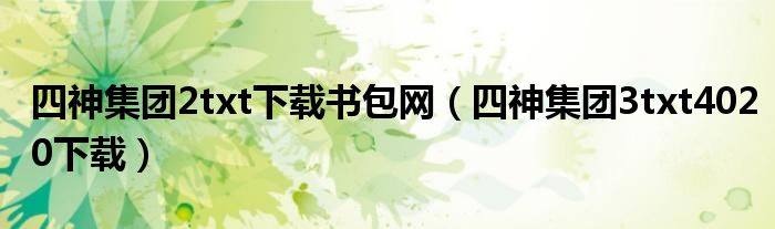导读 大家好,今天小六子来为大家解答以下的问题,关于四神集团2txt下载书包网,四神集团3txt4020下载这个很多人还不知道,现在让我们一起来看看