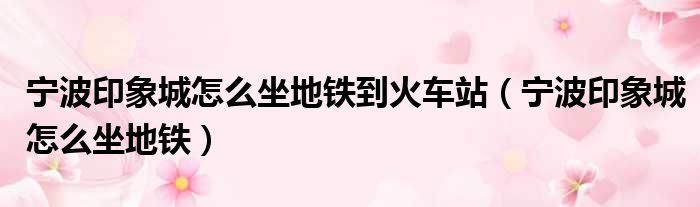 宁波印象城怎么坐地铁到火车站(宁波印象城怎么坐地铁)