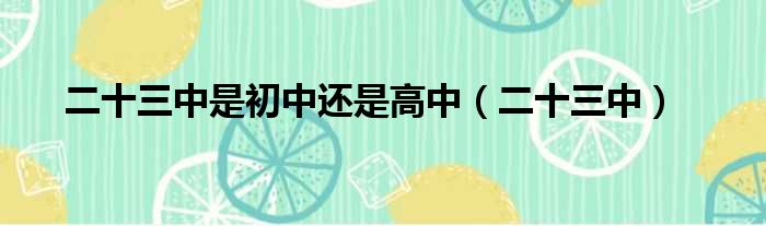 大家好,今天小六子来为大家解答以下的问题,关于二十三中是初中还是高中,二十三中这个很多人还不知道,现在让我们一起来看看吧!