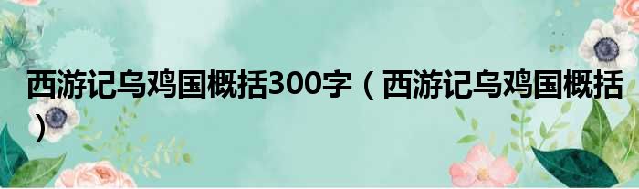 西游记乌鸡国概括300字(西游记乌鸡国概括)