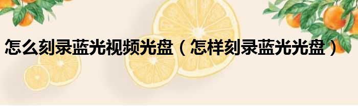 怎么刻录蓝光视频光盘(怎样刻录蓝光光盘)