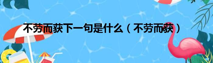 大家好,今天小六子来为大家解答以下的问题,关于不劳而获下一句是什么,不劳而获这个很多人还不知道,现在让我们一起来看看吧!