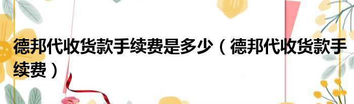 德邦代收货款手续费是多少(德邦代收货款手续费)